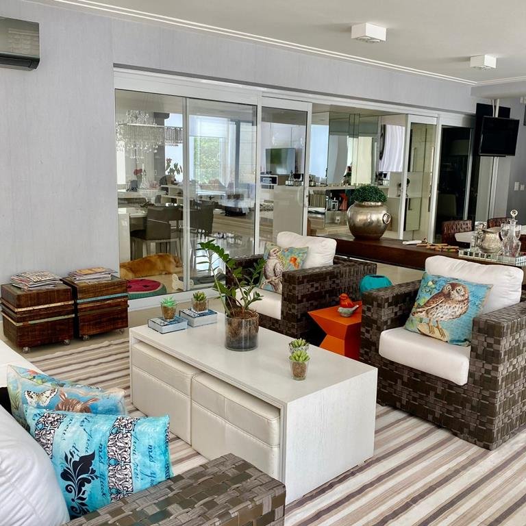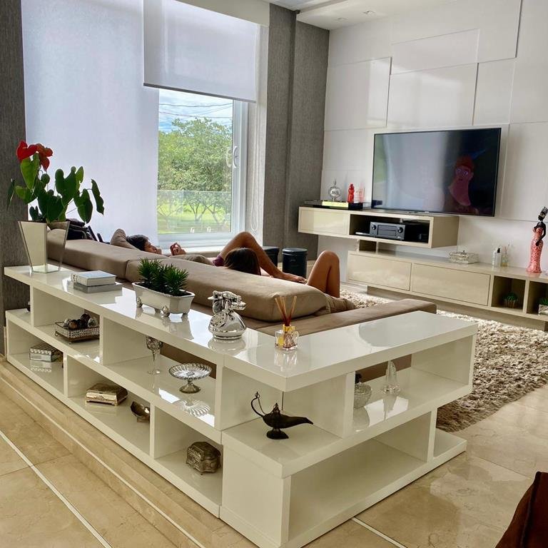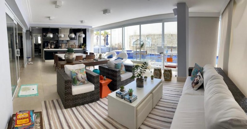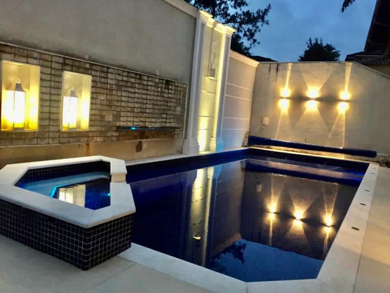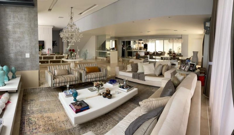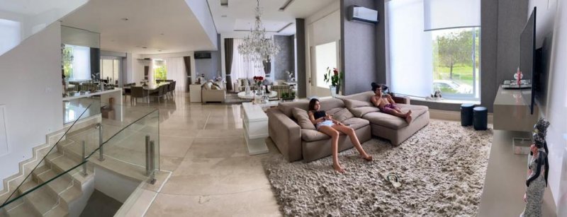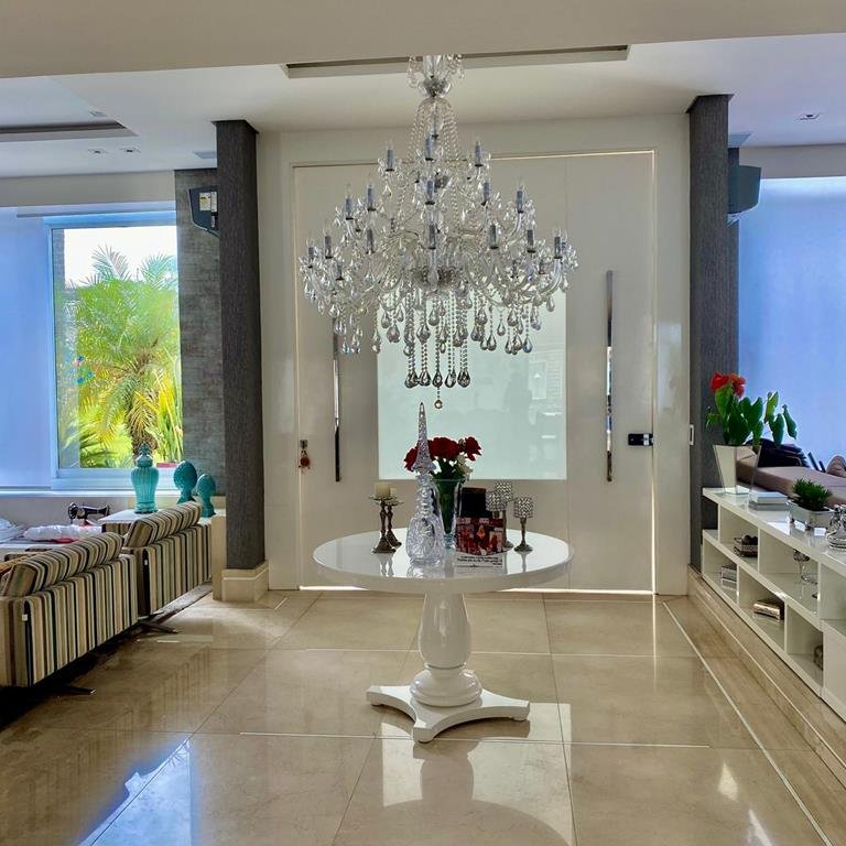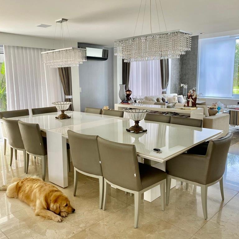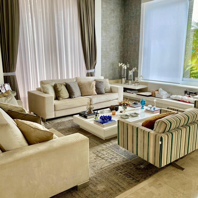 MAGNÍFICA residência com 880m² de área construída , totalmente MOBILIADA e DECORADA, localização PRIVILEGIADA em frente à praça e próxima a portaria. São 5 amplas Suítes com Ar Condicionado, Aspiração central, Sótão com Home Theater e Ateliê .Amplo espaço Gourmet com Adega e Chopeira e Piscina.