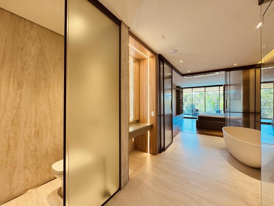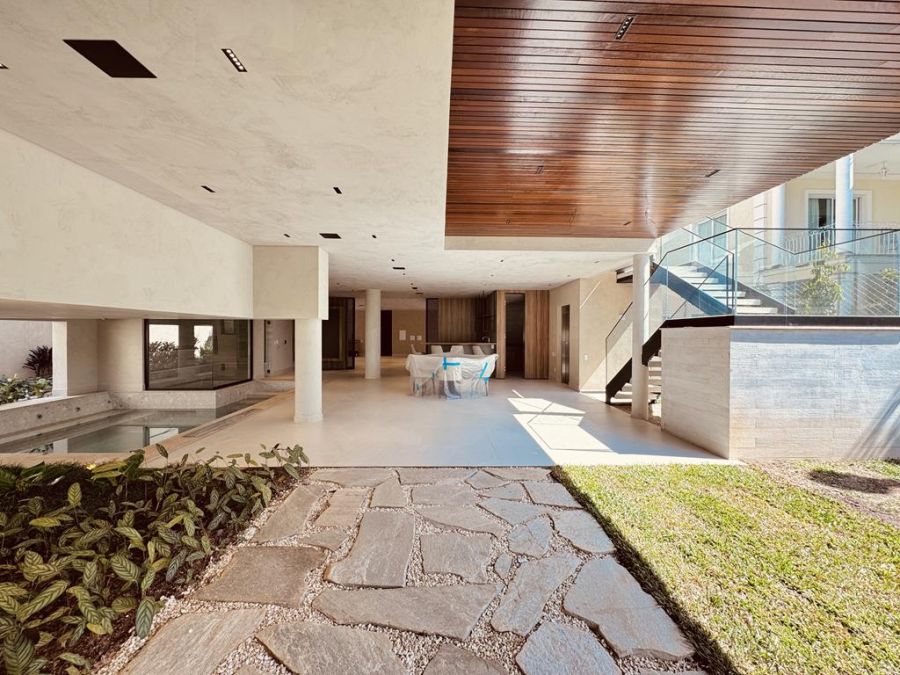 MAGNÍFICA e ACONCHEGANTE - MOBILIADA , arquitetura moderna e imponente, ambientes integrados, repleta de ARMÁRIOS PLANEJADOS, ELEVADOR, CINEMA, com 5 suítes (todas com closets), Sala 03 ambientes, LAREIRA, 2 ADEGAS, AR-CONDICIONADO em todos ambientes, AUTOMAÇÃO, ÁREA DE LAZER COMPLETA , com salão de jogos, piscina, sauna, churrasqueira, amplo espaço gourmet, garagem com 6 vagas e LOCALIZAÇÂO PRIVILEGIADA próximo a portaria, fundos para área verde arborizada e no melhor condomínio da região de alphaville - Residencial Tamboré 2.