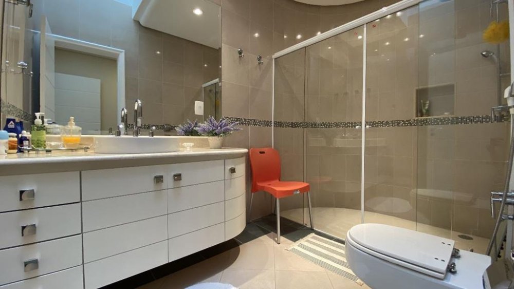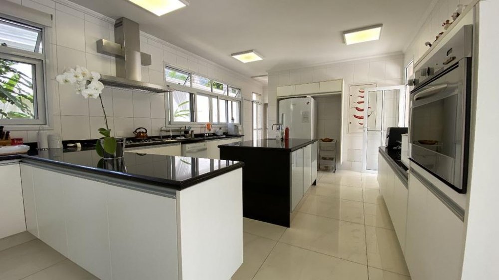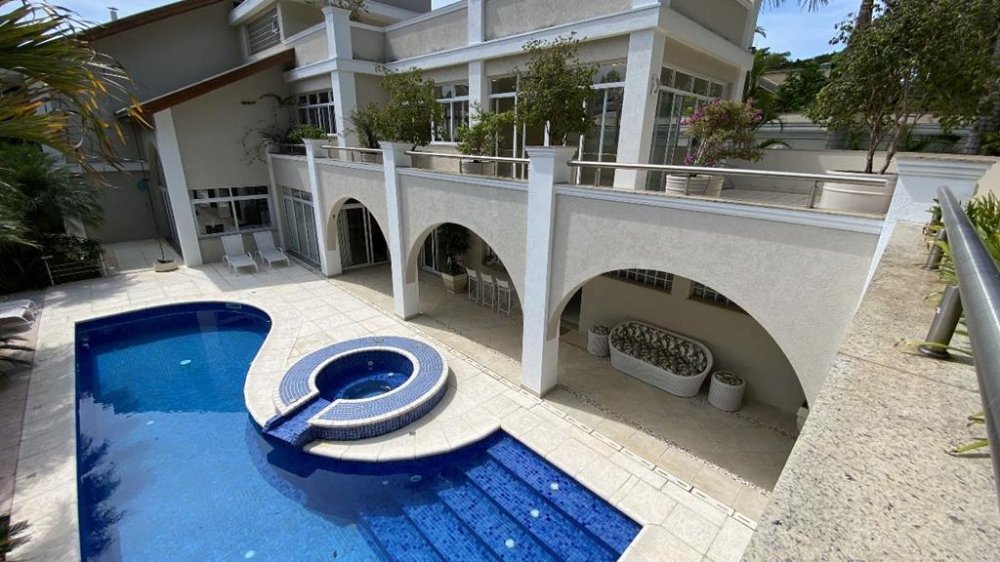 BELÍSSIMA CASA, REPLETA DE ARMÁRIOS, com 5 amplas suítes com closet, salão de festas, adega, escritório, quarto de empregada com banheiro, aquecimento solar para água, captação de água de chuva, irrigação automática com água de chuva , AR CONDICIONADO, ÁREA DE LAZER COMPLETA com área de churrasqueira e forno de pizza, home theater, piscina com automação, muito verde e no melhor condomínio de Alphaville - Residencial Tamboré 2.