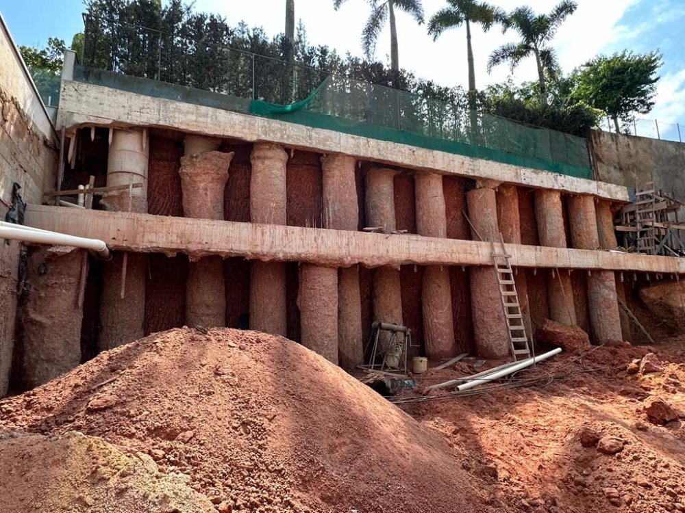 ESPETACULAR TERRENO - com 1043 m² pequeno aclive , um dos últimos terrenos do residêncial, com toda infra de TERRAPLANAGEM e MURO DE ARRIMO 100% executados, TODO MURADO, alameda principal do condomínio, sem saída , frente área verde, prx portaria e área de esportes e lazer em um dos melhores condomínios de Alphaville Residencial Tamboré 2.