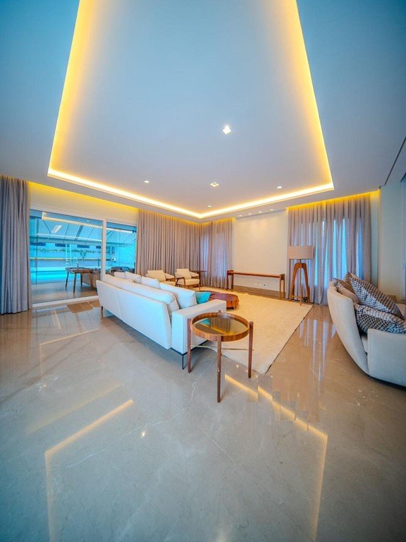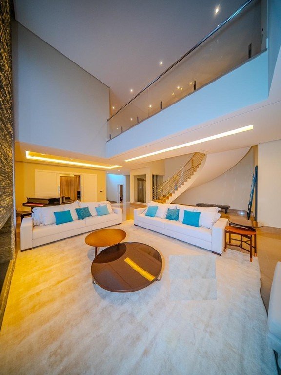 MANSÃO CINEMATOGRÁFICA - RESIDENCIAL TAMBORÉ 2 - DISPONIBILIDADE IMEDIATA, com 1.257,72m², MOBILIADA, 05 suítes (01 suíte máster com 44m² e com closet de 29,83m), sala 04 ambientes, sendo, uma sala com dois ambientes, living com lareira, sala de jantar, home theater e escritório. FANTASTICA E COMPLETA ÁREA DE LAZER com espaço gourmet, sauna, bar molhado, piscina de 63m² e hidromassagem integrada), salão de festas com adega climatizada, GERADOR, AR-CONDICIONADO, AUTOMAÇÃO, ESPAÇO PARA ACADEMIA, ROOFTOP, ELEVADOR, copa para funcionários, depósito de 11m²e 3 dormitórios para funcionários e uma área de serviço completa, LOCALIZAÇÃO PRIVILEGIADA em rua sem saída, frente área verde, próximo a portaria, área de esportes e garagem com 07 vagas cobertas e no melhor condomínio de Alphaville - Residencial Tamboré 2.