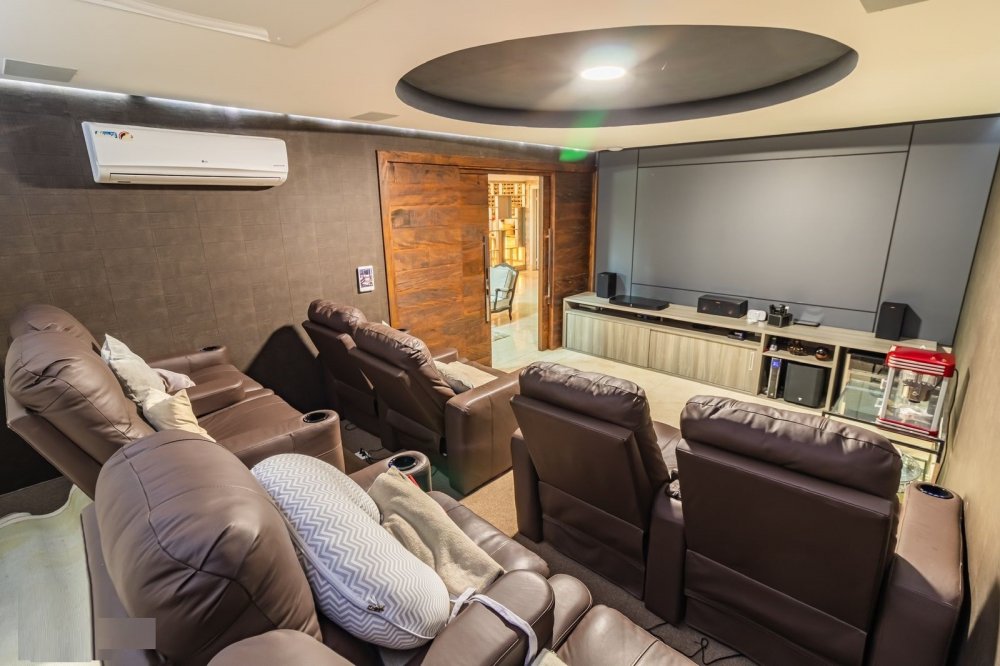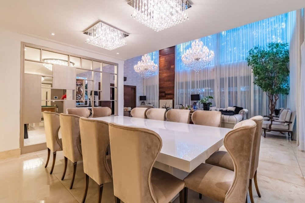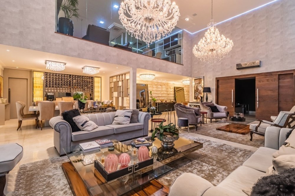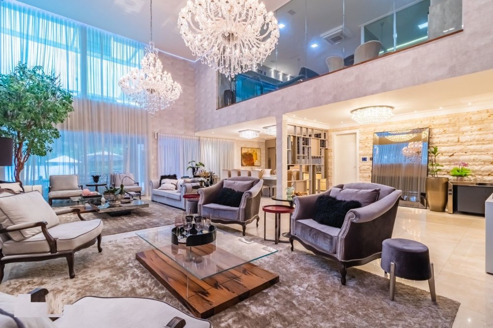 ESPETACULAR MANSÃO - RESIDENCIAL MELVILLE - MOBILIADA, 05 suítes (sendo o Master com Closet amplo e banheiro senhor e senhora), sala 04 ambientes com pé direito duplo, sala cinema 08 lugares e escritório, COMPLETA ÁREA DE LAZER com Jardim com paisagismo, Sala Fitness, espaço gourmet, piscina, salão de festas, adega climatizada, AR-CONDICIONADO, AUTOMAÇÃO TOTAL, PISO SUPERIOR BLINDADO e garagem com 06 vagas cobertas.