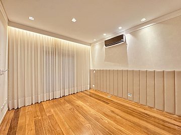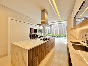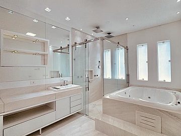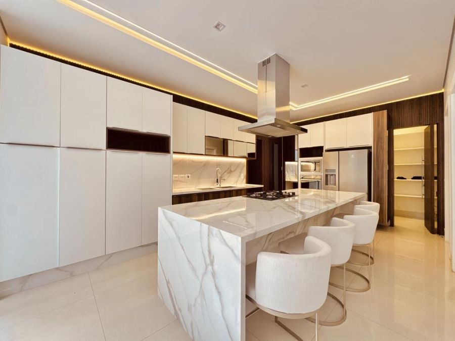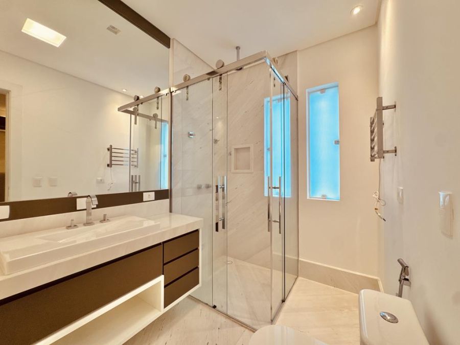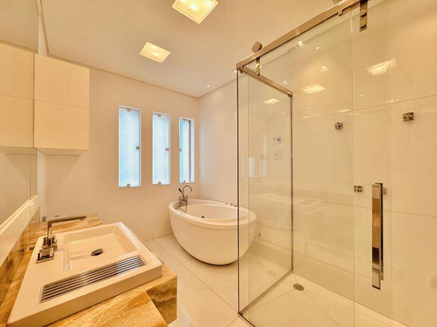LUXO E CONFORTO - MOBILIADA , REPLETA DE ARMÁRIOS, com 5 suítes (todas com closets), Sala 03 ambientes, AR-CONDICIONADO em todos ambientes, AQUECIMENTO SOLAR, AUTOMAÇÃO, ÁREA DE LAZER COMPLETA com piscina, spa, churrasqueira, amplo espaço gourmet, cinema, próxima a portaria e garagem com 05 vagas.