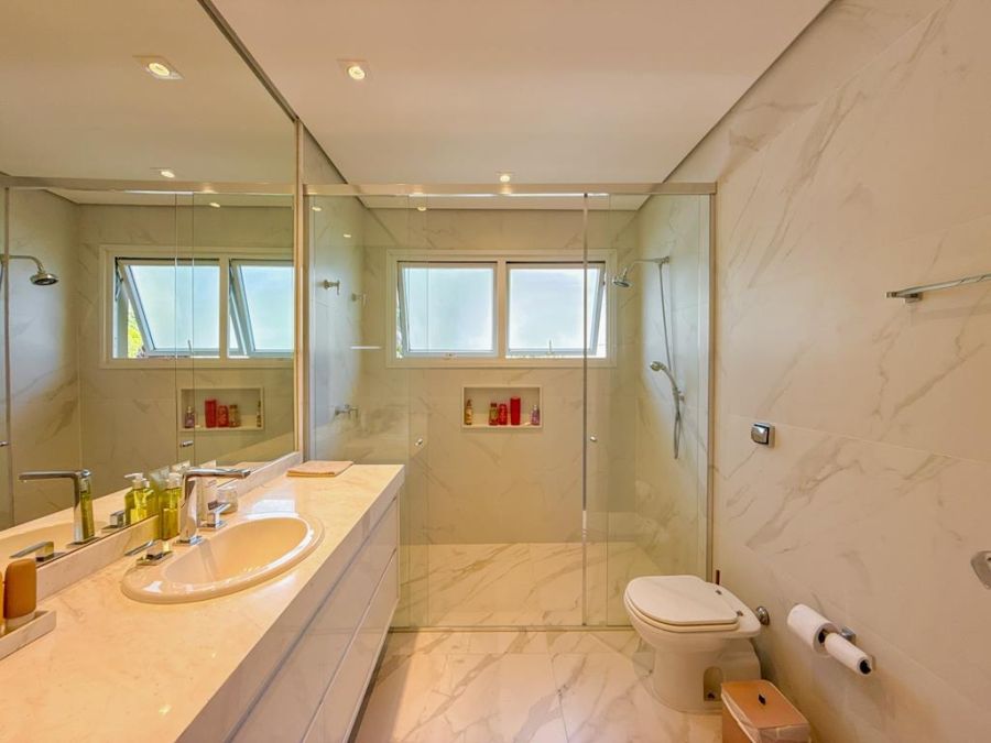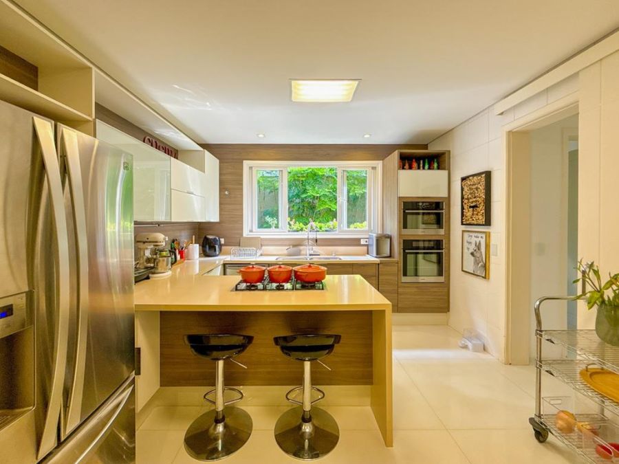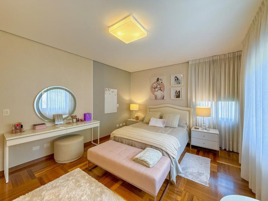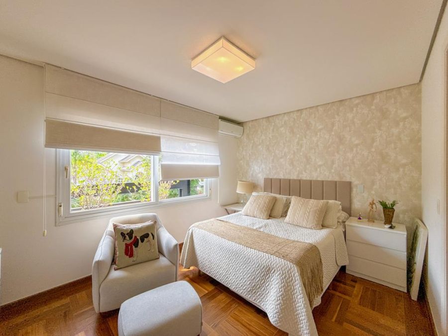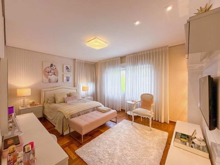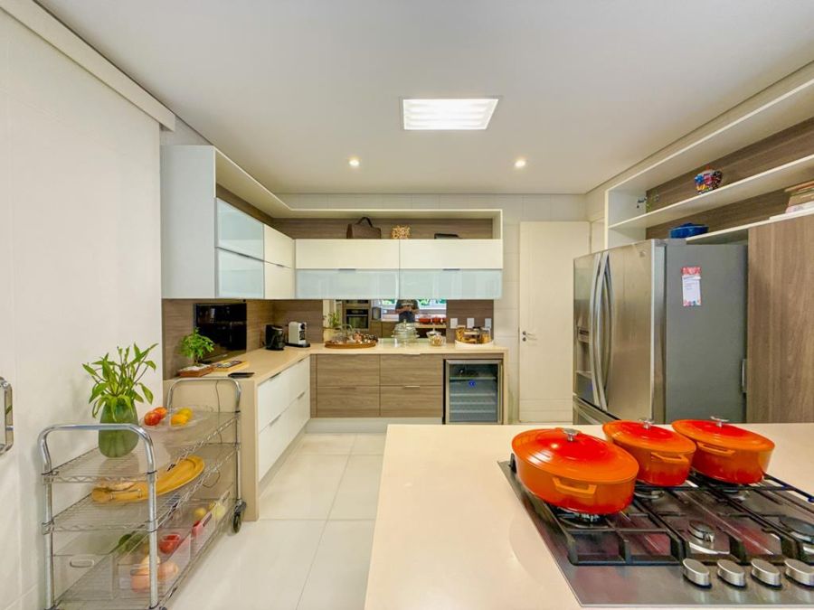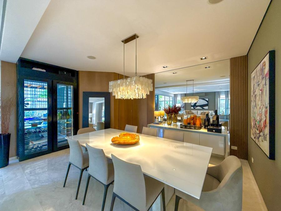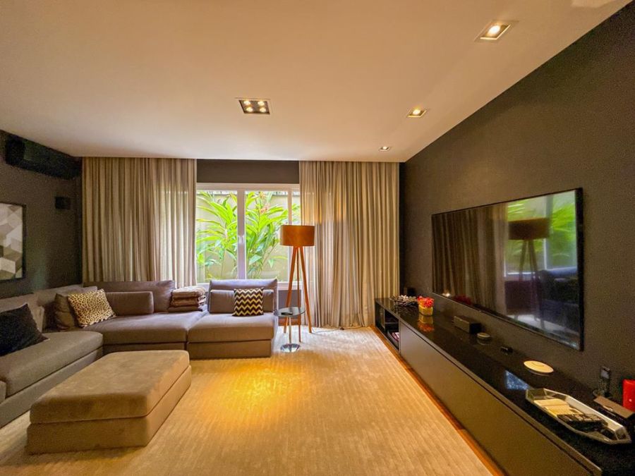 CONFORTO E COMODIDADE - MOBILIADA , REPLETA DE ARMÁRIOS, com4 suítes (todas com closets), Sala 02 ambientes, AR-CONDICIONADO em todos ambientes, AUTOMAÇÃO, ÁREA DE LAZER COMPLETA com piscina, lareira, adega, churrasqueira, amplo espaço gourmet, cinema, próxima a portaria e garagem com 03 vagas.