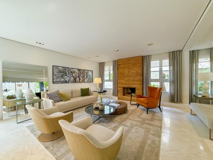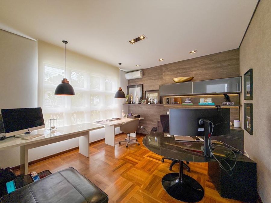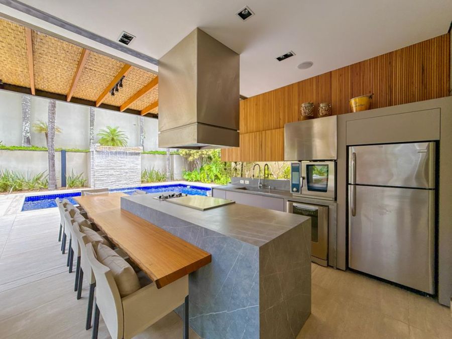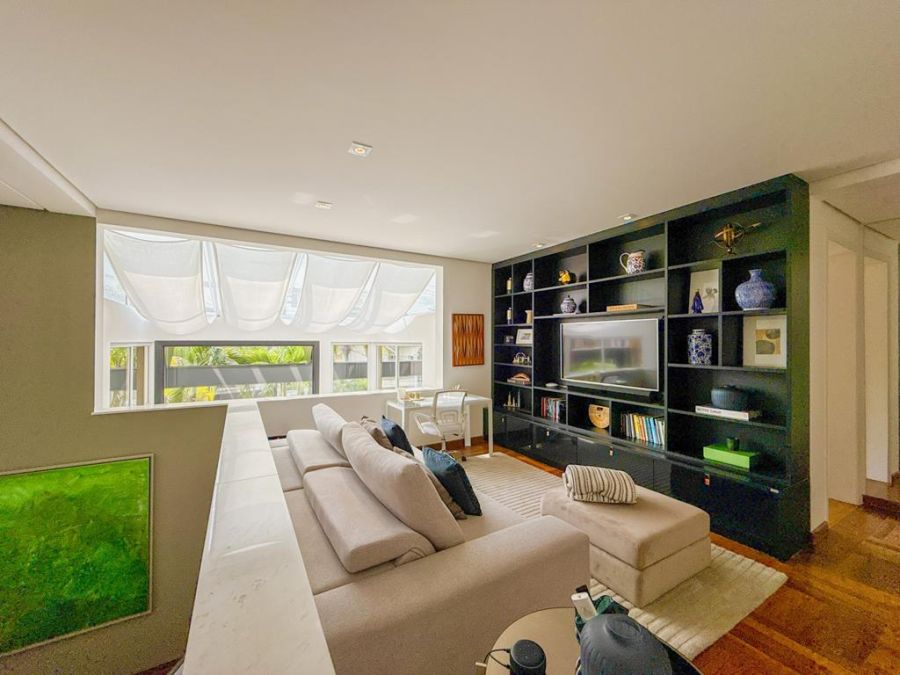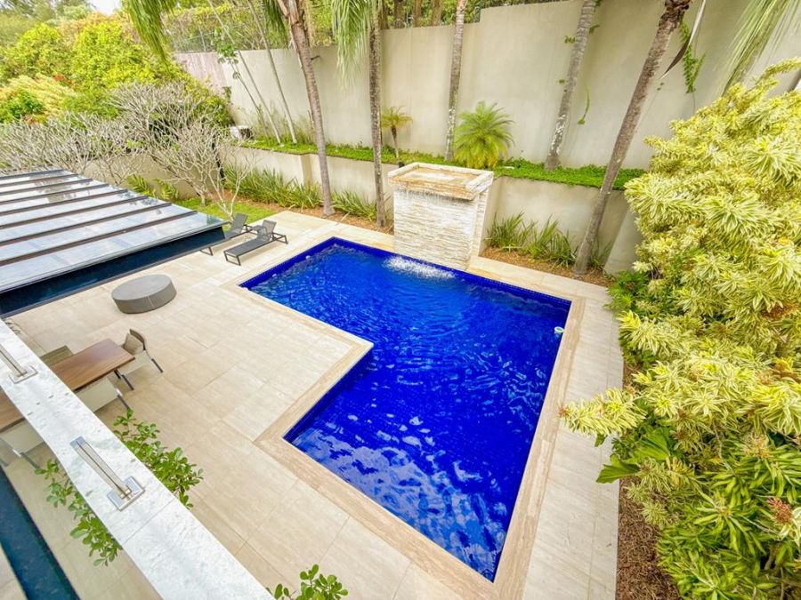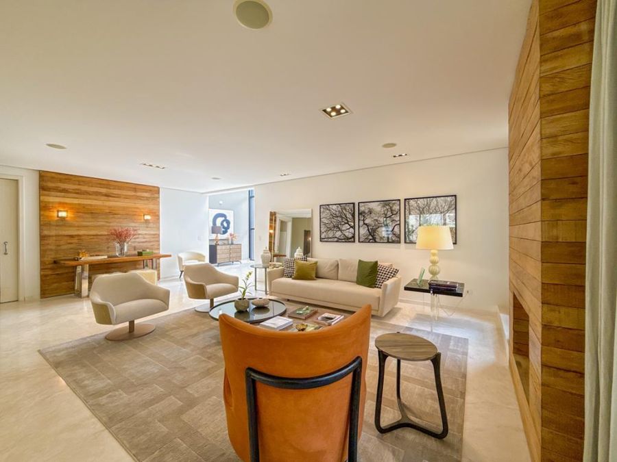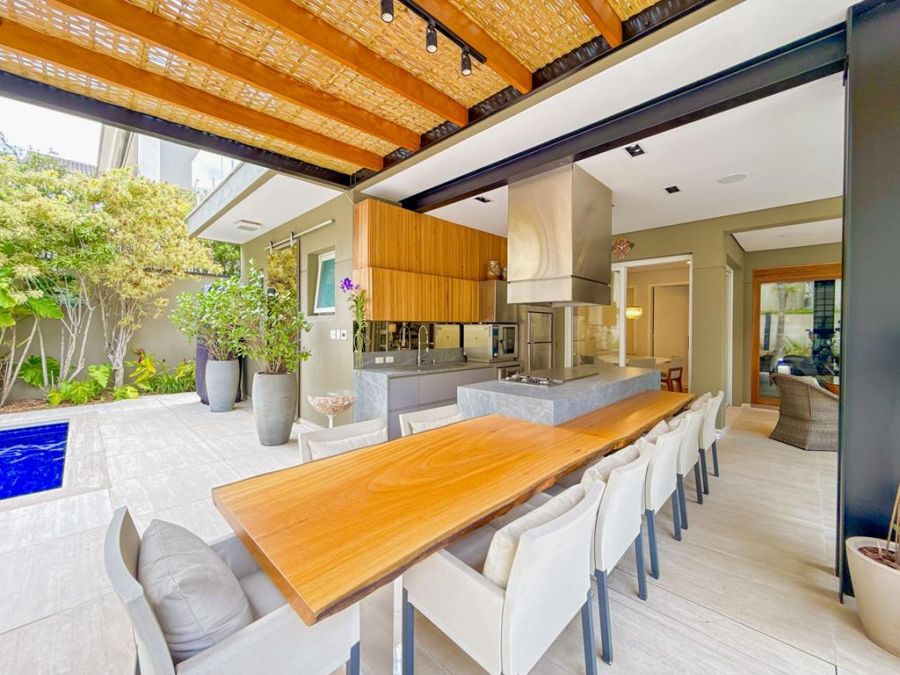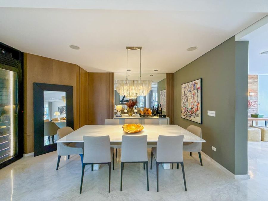 CONFORTO E COMODIDADE - MOBILIADA , REPLETA DE ARMÁRIOS, com4 suítes (todas com closets), Sala 02 ambientes, AR-CONDICIONADO em todos ambientes, AUTOMAÇÃO, ÁREA DE LAZER COMPLETA com piscina, lareira, adega, churrasqueira, amplo espaço gourmet, cinema, próxima a portaria e garagem com 03 vagas.